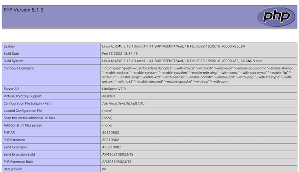 さて、UbuntuServerの20.04.4(LTS)に公式リポジトリ経由でOpenLiteSpeedの1.7.15とPHP8.1.2をインストールして動作成功したと記事を投稿しました。 その後にAchiLinuxで稼…