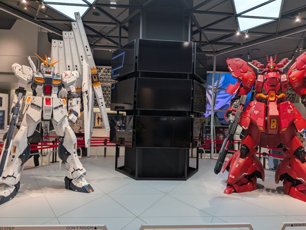 「νガンダム」と「サザビー」福岡のガンダムスポットの顔とも言えるこの2体がお出迎えしてくれた。