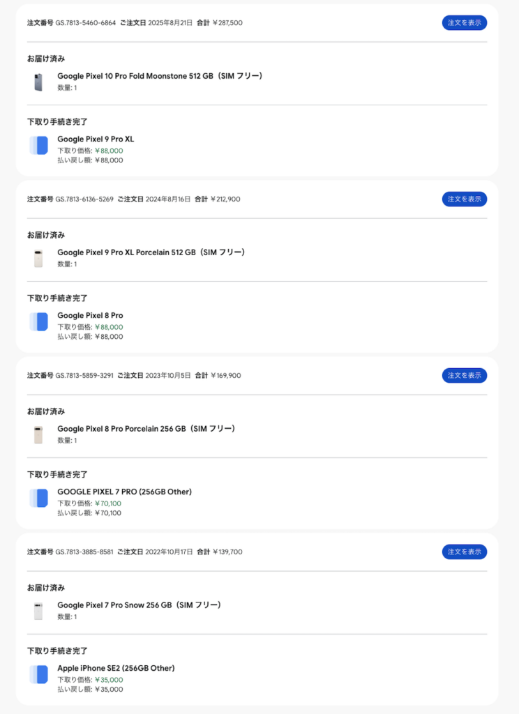 2023年にPixel8 Proに乗り換え、次に2024年にPixel9 Pro XLに乗り換え。