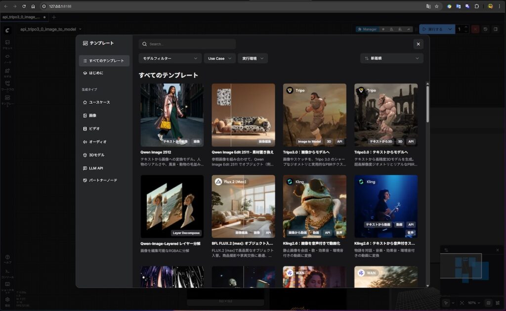 comfyUIの画面が表示されるはずだ。